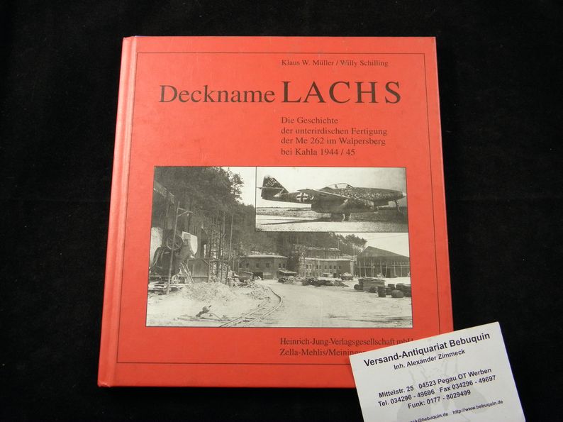 2. WELTKRIEG.– MÜLLER, Klaus W. + SCHILLING, Willy: Deckname Lachs. Die Geschichte der unterirdischen Fertigung der Me 262 im Walpersberg bei Kahla 1944/45. Zella-Mehlis (Heinrich Jung), 1996. Gr. 8°. 87 S. mit zahlr. Abb. ill. OPb. wie neu.