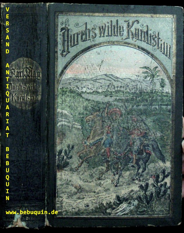 MAY, Karl: Durchs wilde Kurdistan. Reiseerzählung. 70.-75. Tsd. Radebeul (Karl May Stiftung), (1914.) 638 (1) S. mit gemusterten Vorsatzpapieren farb. ill. OPb. (DB2) Rücken stärker gebräunt, Gelenke gelockert. = Gesammelte Werke, Band II.