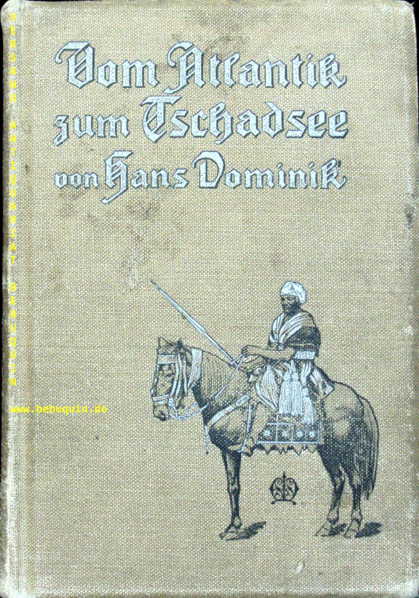 KOLONIEN.– DOMINIK, Hans: Vom Atlantik zum Tschadsee. Kriegs- und Forschungfahrten in Kamerun. Berlin (Mittler), 1908. Gr. 8°. VII, 308 S. mit zahlr. Textabb. sowie einer Faltkarte im Anhang. ill. OLn. Einband etwas angeschmutzt, sonst gut erhalten. seltene EA WG 11.