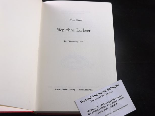 2. WELTKRIEG.– HAUPT, Werner: Sieg ohne Lorbeer. Der Westfeldzug 1940. Preetz (Gerdes), 1965. 366 S. + zahlr. Bildtafeln. OLn mit goldgeprägter Deckelvignette. Ordnungsgemäß aus Bundeswehrbeständen ausgesondertes Bibliotheksexemplar (Rückenschild und Stempel). EA.