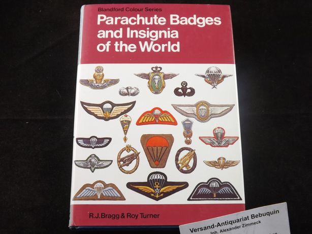 LUFTFAHRT.– BRAGG, R.J. + TURNER, Roy: Parachute Badges and Insignia of the World in Colour. Poole, Dorset (Blandford), 1979. 227 S. mit zahlr. z. T. farb. Abb. OPb. mit OUmschl. Ordnungsgemäß aus Bundeswehrbeständen ausgesondertes Bibliotheksexemplar (Rückenschild, Stempel). EA mit eigenhändiger Verfasserwidmung mit voller Signatur auf Vorsatz.