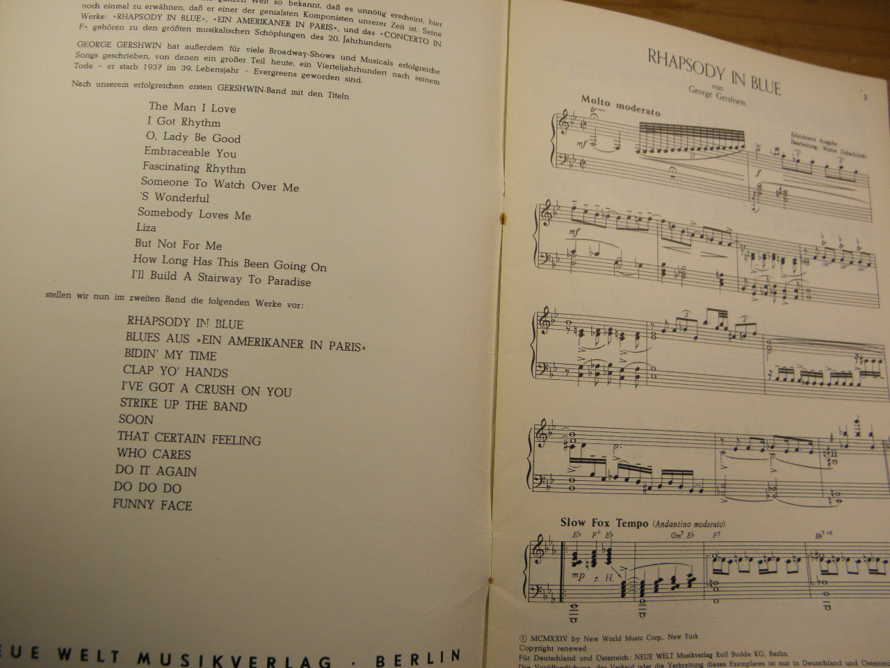 SONGBOOKS.– GERSHWIN, George: Evergreens. Band 2. Gesang und Klavier. Berlin (Neue Welt), 1974. 4°. 25 S. mit Noten. ill. OKart. gutes Ex. EA.