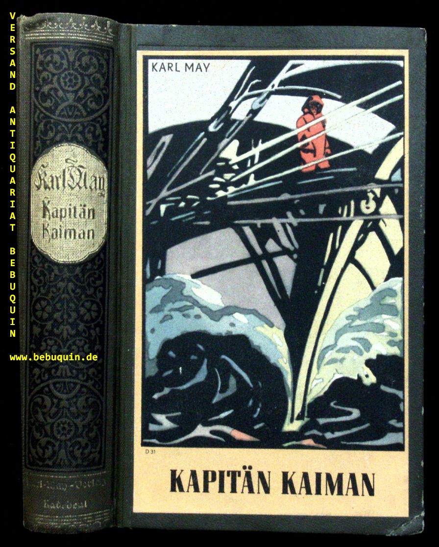 MAY, Karl: Kapitän Kaiman und andere Erzählungen. 201.– 214. Tsd. Radebeul (Karl May), (1949). 510 S. ill. OHLn. (DB 151). kaum schief gelesen, feines farbstarkes und goldglänzendes Ex. = Gesammelte Werke, Bd. 19. Nach Kriegsende lagerten noch rund 7200 ungebundene Ex. bei Schwabe in Leipzig. Erst 1949 wurde der Nachdruck genehmigt. Zunächst wurden die vorhandenen Deckelbilder der Volksausgabe aufgebraucht, später neue gedruckt. Hier also 1 dieser raren Nachdrucke. Hermesmeier GW19 NK.