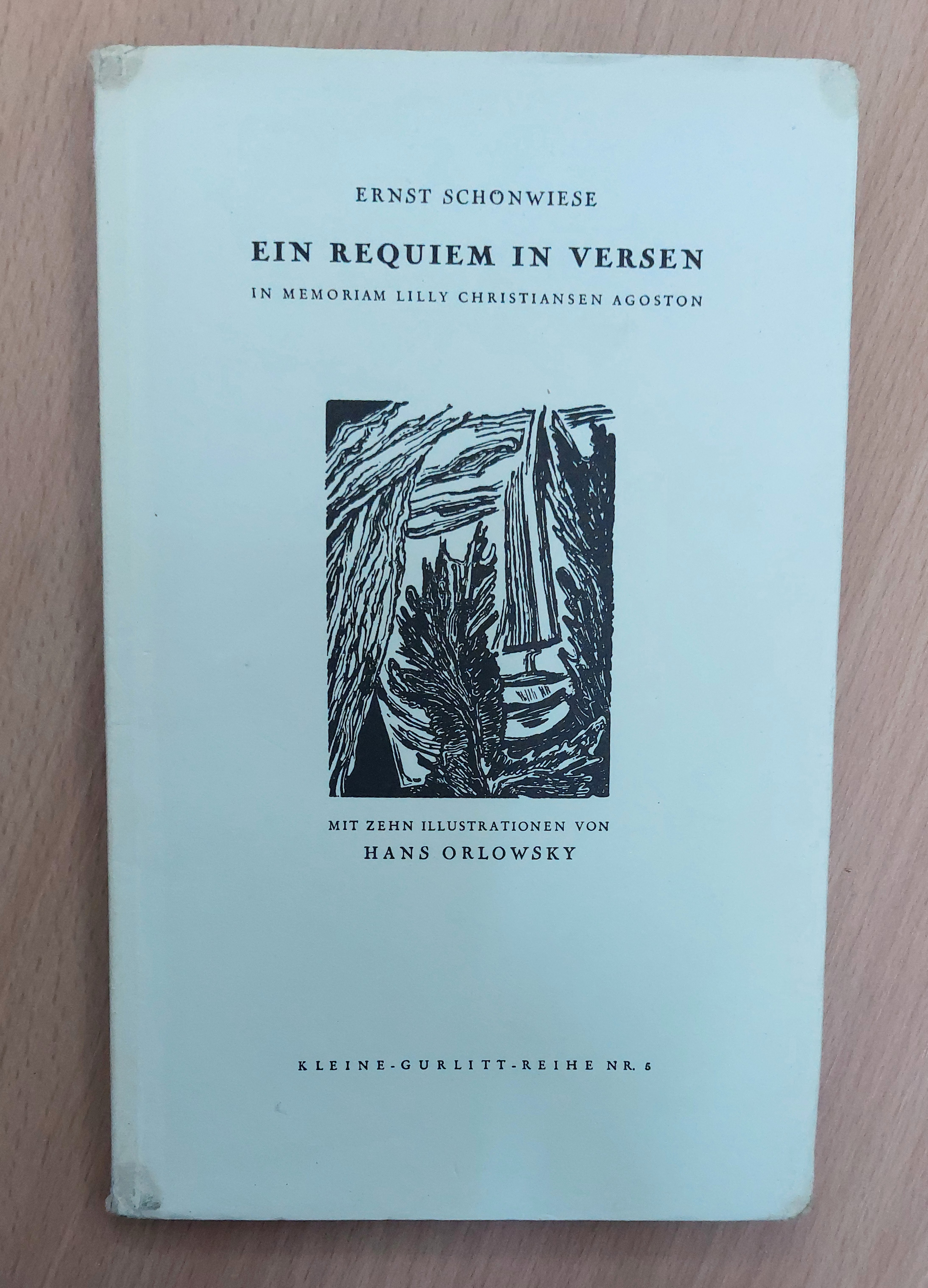 ORLOSWKI.– SCHÖNWIESE, Ernst: Ein Requiem in Versen. In memorian Lilly Christiansen Agoston. Linz (Gurlitt), 1953. 28 S. mit 10 Illustrationen von Hans Orlowsky. ill. OKart. gutes Ex. mit der falschen Schreibweise des Namens. EA.