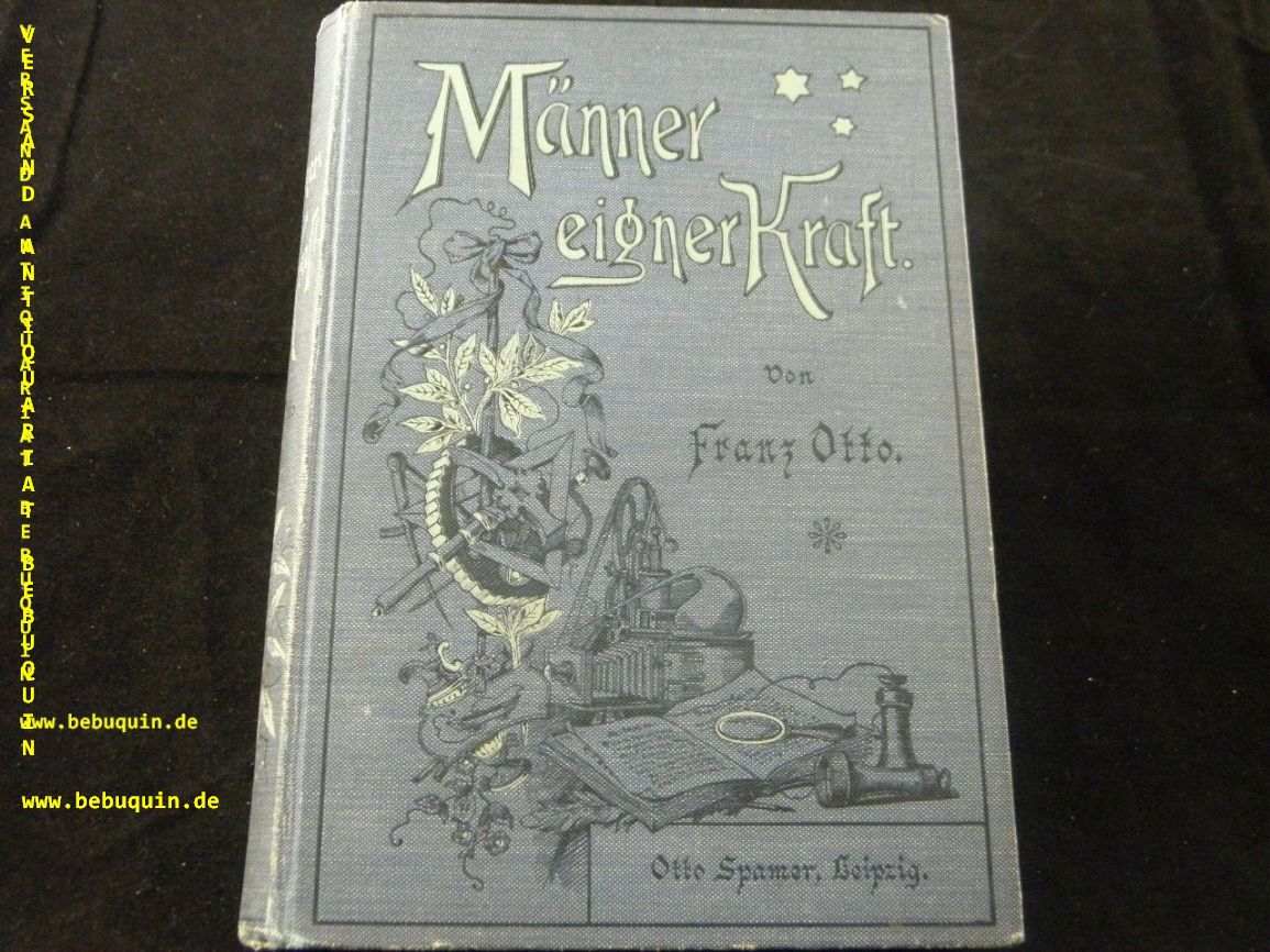 OTTO, Franz: Männer eigner Kraft. Vorbilder von Hochsinn, Tatkraft und Selbsthilfe für Jugend und Volk. 9. Aufl. Leipzig (Spamer), 1910. Gr. 8°. VIII, 302, 10 S. mit 8 Vollbildern + Anzeigenteil. ill. OLn. Gelenke stabilisiert, gutes Ex. KLotz 5262/40.