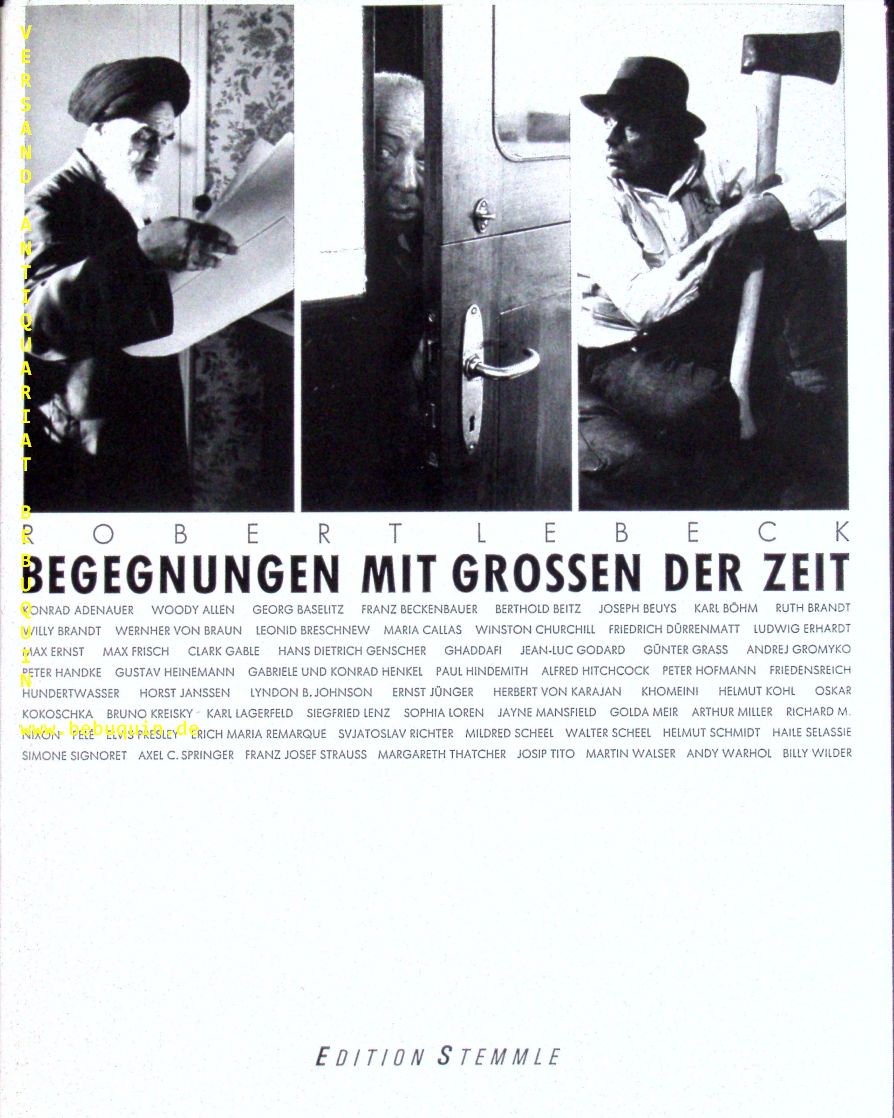 LEBECK, Robert: Begegnungen mit Grossen der Zeit. Mit Texten von Rainer Wick. Schaffhausen (Stemmle), 1987. 4°. 159 S. mit zahlr. Bildtafeln. OPb mit OUmschl. gutes Ex. EA mit einer persönlichen datierten und voll signierten Verfasserwidmung auf Titelseite.