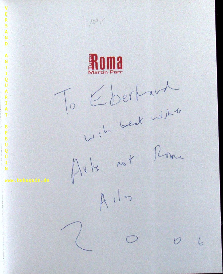 PARR, Martin: Utta Roma. Italienisch von Barringer Fifield. Rom (Contrasto), 2006. Gr. 8°. ca 90 S. mit zahlr. farb. Bilsdtafeln. OLn mit Blindgrägung. farb. ill. OKart. seltene italienische EA mit einer 5zeiligen eigenhändigen Widmung des Autors auf Vortitel.