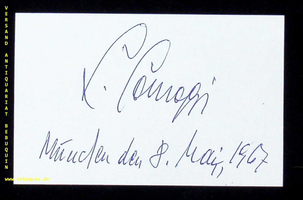 SOMOGGI, Laszlo (Dirigent): eigenhändig signierte und datierte Autogrammkarte. München, 8.5.1967. 8 x 12,5 cm. Karteikarte. . László Somogyi (geboren 25. Juni 1907 in Budapest, Österreich-Ungarn; gestorben 20. Mai 1988 in Genf, Schweiz) war ein ungarischer Dirigent. (Wikipedia)