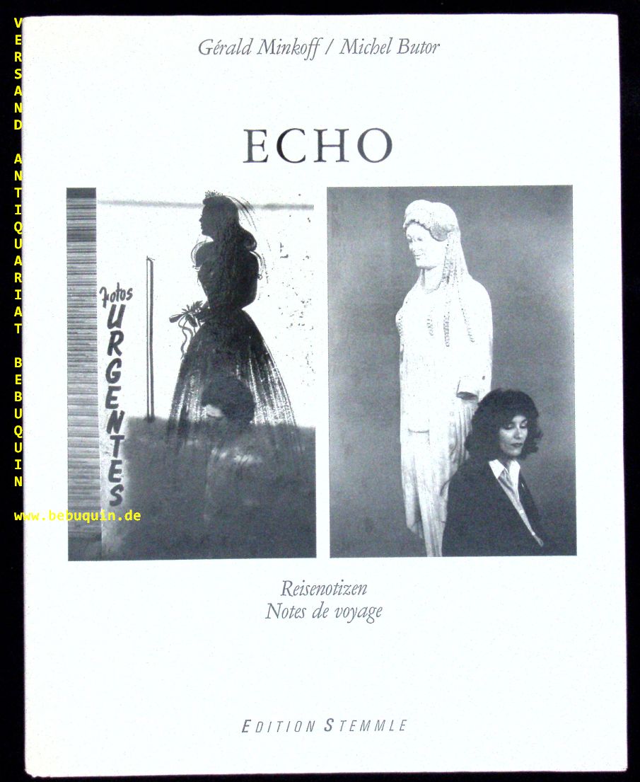 MINKOFF, Gerald + BUTOR, Michel: Echo. Reisenotizen. Notes de voyage. Schaffhausen (Stemmle), 1988. 4°. 79 S. miot zahlr. Bildtafeln. OPb mit OUmschl. EA.