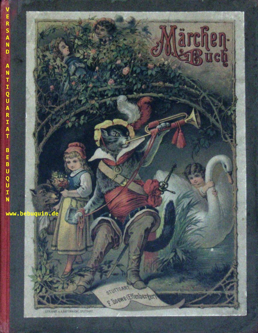 NEUES MÄRCHENBUCH.– Eine Auswahl von 30 der schönsten Märchen für die Jugend. 11. Aufl. Stuttgart (Loewe), ca 1880. 4°. 110 (2) S. + 12 Farbdruckbilder von C. Offterdinger + H. Leutemann. farb. ill. OHLn. kaum fingerspurig, feines Ex. Wegehaupt 2309.