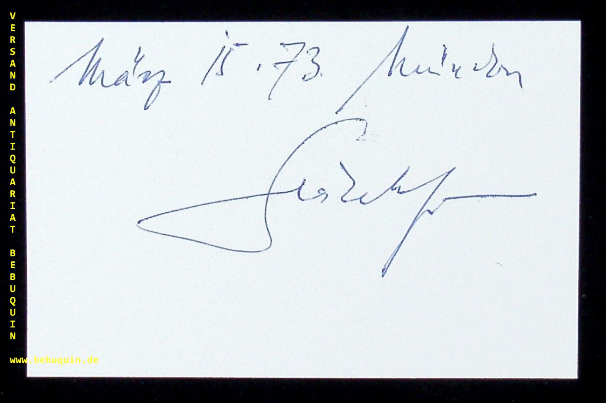 STAREK, Jiri (Dirigent): eigenhändig signierte und datierte Autogrammkarte. München (Herkulessaal), 15.3.1973. 8 x 12,5 cm. Karteikarte. Jirí Stárek (* 13. Juli 1923 in Mocovice; † 25. September 2011 in Prag) war ein tschechischer Dirigent. (Wikipedia)
