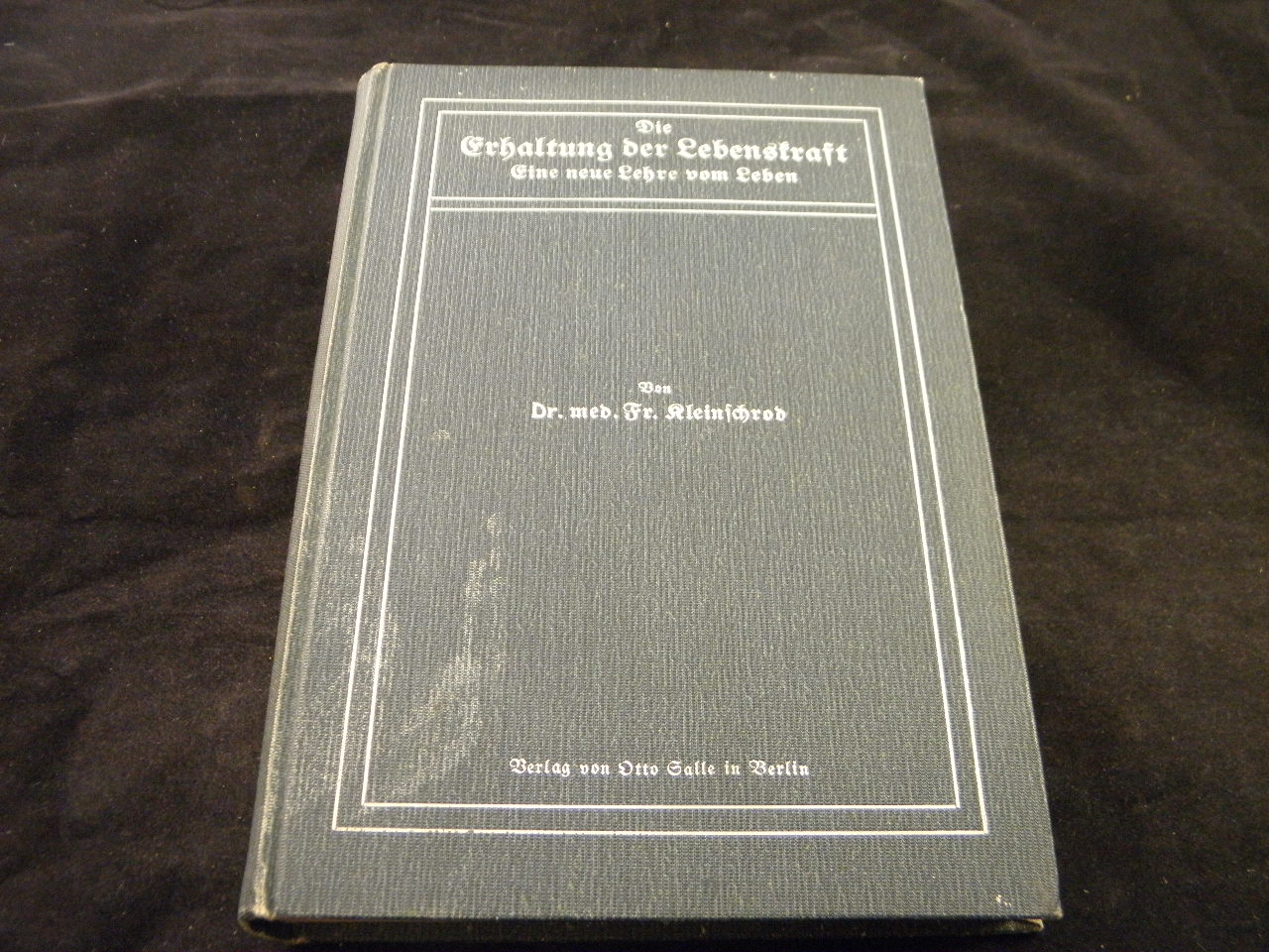 MEDIZIN.– KLEINSCHROD, Franz: Die Erhaltung der Lebenskraft. Eine neue Lehre vom gesunden und kranken Leben, zugleich ein Lösungsversuch des Problems vom Leben. Berlin (Salle), 1909. Gr. 8°. XI, 306 (2) S. OLn. gutes Ex. EA des Sanitätsrats. Kleinschrod war praktischer Arzt, Naturwissenschaftler und Philosoph und Mitbegründer der Kneipp-Bewegung.