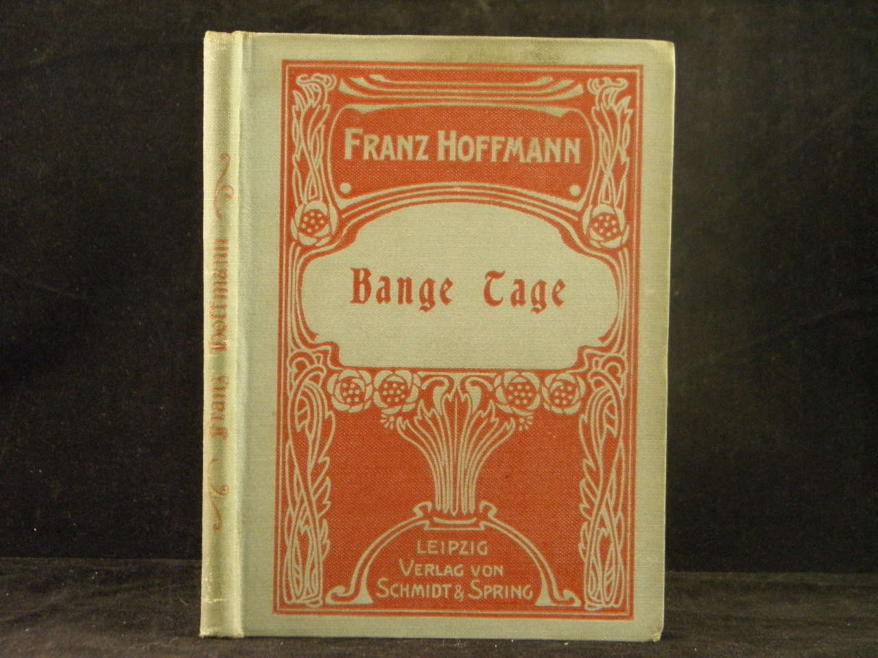 HOFFMANN, Franz: Bange Tage. Eine Erzählung aus der Zeit der Freiheitskriege. 5. Aufl. Leipzig (Schmidt & Spring), ca 1890. 12°. 84 S. mit 4 Stahlstichen. ill. OLn mit Jugendstilornamentik. Einband kaum angeschmutzt. = Franz Hoffmann’s Jugend Bibliothek. Klotz 2774/292