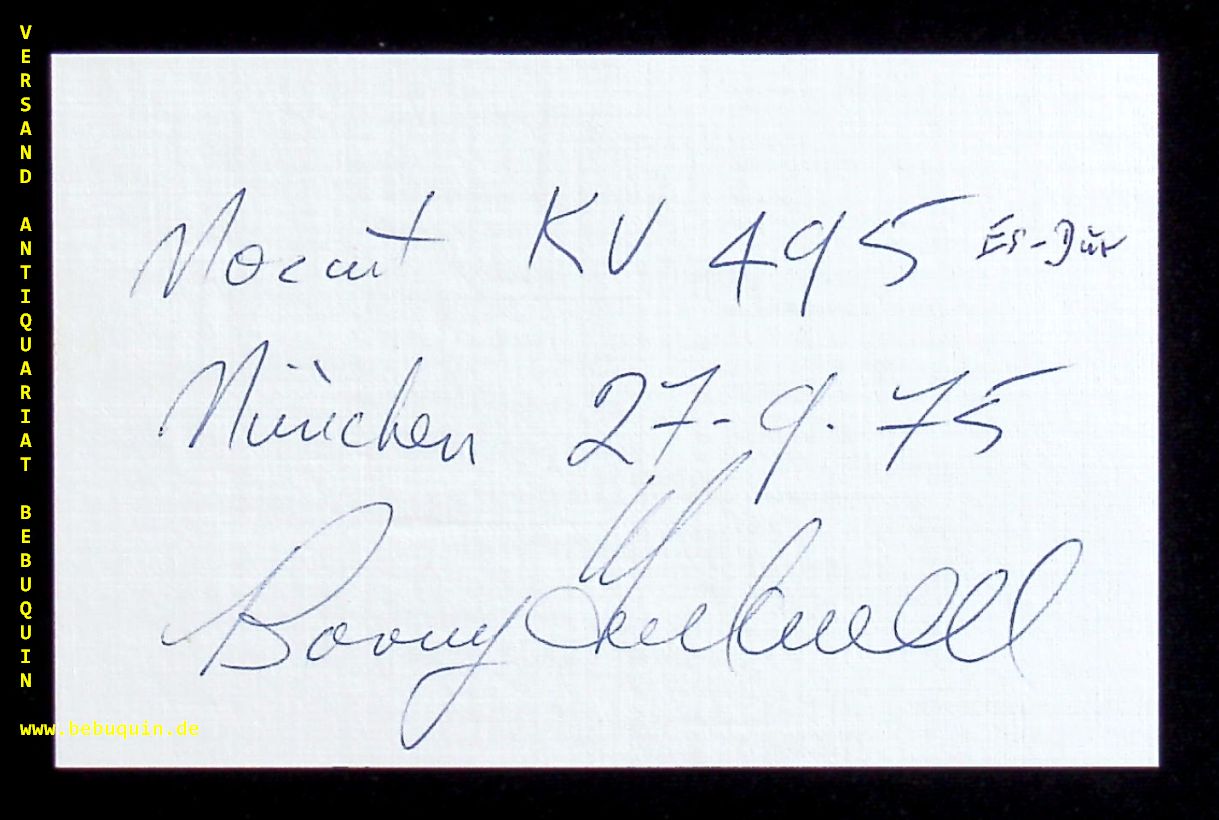 TUCKWELL, Barry (Hornist): eigenhändig signierte und datierte Autogrammkarte. München (Herkulessaal), 27.9.1975. 8 x 12,5 cm. Karteikarte. Barry Tuckwell (* 5. März 1931 in Melbourne, Australien; † 16. Januar 2020 ebenda) war ein australischer Hornist und Dirigent. (Wikipedia)