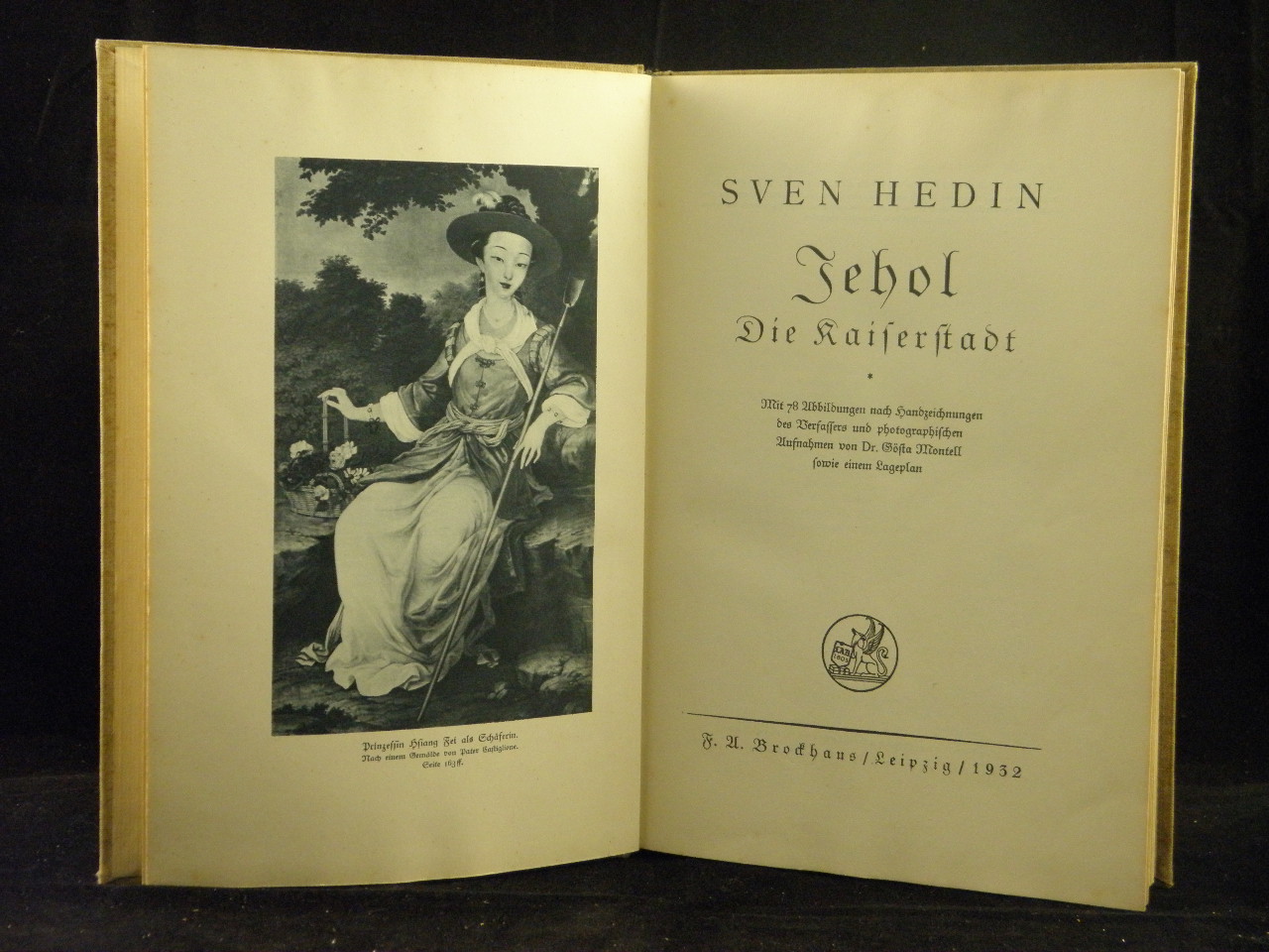 ASIEN.– HEDIN, Sven: Jehol. Die Kaiserstadt. D.v. Th. Geiger. Leipzig (Brockhaus), 1932. Gr. 8°. 212 S. mit 78 Abb. + 1 Lageplan. ill. OLn . Einband stark bestaubt, innen gut. seltene EA.