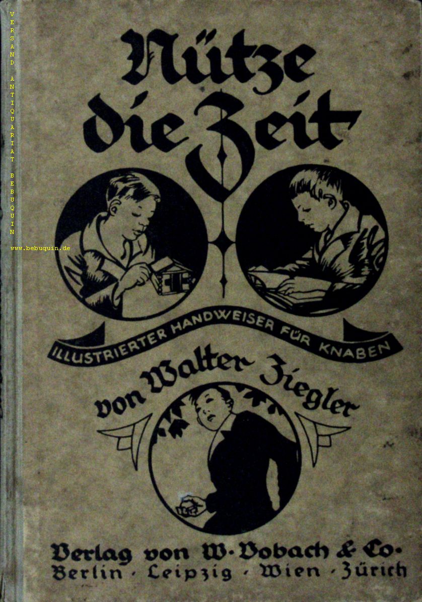 SPIELE.– ZIEGLER, Walter: Nütze die Zeit. Illustrierter Handweiser für Knaben zur Beschäftigung u. Fortbildung von Körper u. Geist daheim u. draußen. 2. unveränd. Aufl. Berlin (Vobach), 1923. Gr. 8°. 187 S. mit 280 Ill. u. graph. Darst. ill. OHLn. Ecken etwas bestoßen.