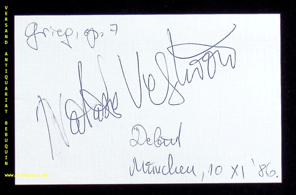 VELJKOVIC, Natasa (Pianistin): eigenhändig signierte und datierte Autogrammkarte. München (Philharmonie), 10.11.1986. 8 x 12,5 cm. Karteikarte. Nataša Veljkovic (* 2. April 1968 in Belgrad) ist eine serbische Pianistin. (Wikipedia)