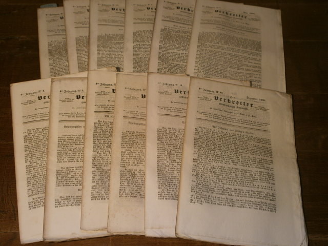 DER VERBREITER GEMEINNÜTZIGER KENNTNISSE.– 4. Jahrgang. 12 Hefte. Genf (Collin & Co), 1836. 4°. 392 S. mit zahlreichen xylographischen Illustrationen. teils unaufgeschnitten, Kanten unbeschnitten, Papier altersbedingt gebräunt. Kompletter vierter Jahrgang. Interessantes Zeitdokument als Spiegel des biedermeierlichen (populären) Wissensstandes auf fast allen Gebieten der nationalen Wirtschaft und Technik. Als Zielgruppen dürften primär die Haushaltungen von Landwirten und Gewerbetreibenden, im weiteren Sinne vielleicht der mit einer gewissen Bildung ausgestattete und Neuerungen gegenüber eher aufgeschlossene Mittelstand in Frage gekommen sein. Vom Konzept her erinnert der ‚Verbreiter‘ in gewisser Weise durchaus an die üblicherweise im Jahresformat erschienenen Kalender. – Der ‚Verbreiter‘ erschien in 17 Jahrgängen von 1833 bis 1849, zuerst in Genf, ab 1837 in Solothurn (J.-L. Brandstetter, Bibliographie der Gesellschaftsschriften, Zeitungen und Kalender in der Schweiz. Bern 1896, in: BSLK Fasc. I b, p. 172).