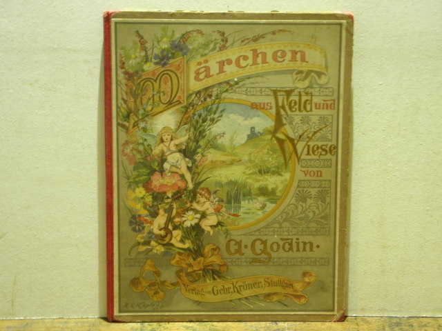 GODIN, A.: (d.i. Amélie Linz-Godin) Märchen aus Feld und Wiese. Stuttgart (Gebrüder Kröner), (1886). Gr. 4°. 40 S. mit 5 ganzseit. farb. Lithographien, 12 farb. Lithograpien im Text u. 8 s/w-Abb. von E. Kepler. farb. ill. OHLn. eine Bildtafel mit kleinem mittigem Einriss, der kaum auffällt, sonst fast tadellos. Seltene EA. Wegehaupt 2012.