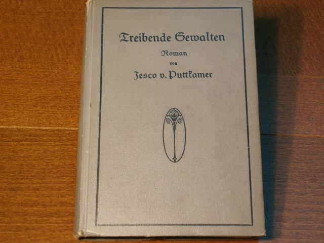 PUTTKAMER, Jesco von: Treibende Gewalten. Roman. Leipzig (Müller – Mann’sche), (1909). 244 (4) S. OPb. Ecken gering bestoßen, gutes Ex. Seltene EA DLL 2133. Verfasser war Dresdener Verleger und Gründer der Zeitschrift „Universum“.