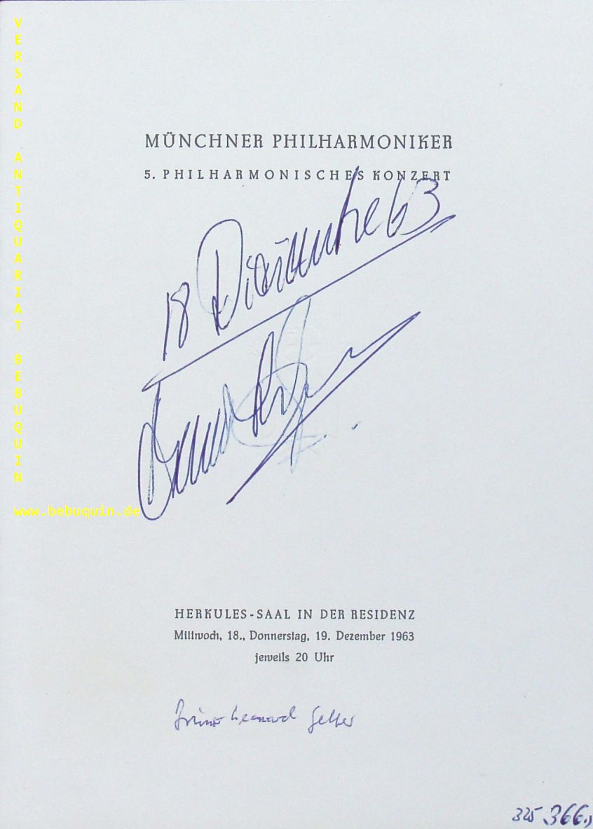 GELBER, Bruno Leonardo (Pianist): eigenhändig signierter und datierter Programmheftausschnitt. München (Herkulessaal), 19.12.1963. 20 x 15 cm. 1 Bl. Bruno Leonardo Gelber (* 19. März 1941 in Buenos Aires) ist ein argentinischer Pianist. (Wikipedia)