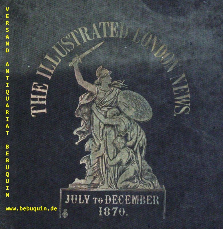 THE ILLUSTRATED LONDON NEWS.– Vol. LVII. Hrsg. von John Lash. Juli bis Dezember 1870. London (Leighton), 1870. 41 x 30 cm. IV, 692 S. mit Hunderten von Holzschnittillustrationen aller Größen und Inhalte sowie 1 gefalteter Kriegsplan. ill. OLn mit Gold- und Blindprägung. alter Rücken neu aufgezogen, Doppeltafeln mit Bindefehler, sonst gut. Eine Auswahl der Motive: Railway Accident rear Newark, Meeting of the Agricultural Society at Oxford, All-England Croquet Club at Wimbledon, A Sketch at Birmingham Cattle-Show, Scenes in China: I-Chang Gorge on the Upper Yang-Tze-Kiang, Christmas in Australia, Prize Dogs at the Birmingham Show, Prize Dogs at the Crystal Palace, Paris Fashion for July, India: The Oghee Punjaub Frontier Post, Spinning Net Thread in the Claddagh Ireland, Appearance of the Plantet Jupiter, Scenes in Paris: Arrest of a Supposed Prussian Spy on the Boulevard de Italians Paris, The Halles Centrales, Balloon from Paris Passing over Versailles, Battle of Sedan, French Prisoners on the Road from Sedan, Guns Captured by Prussians at Sedan, Map of the Country Around Chalons, The Siege of Metz: Imperial Guard, Prussian Advance Post at Mercy Le Haunt, View of the South West, The Fight at Mouzon, The Sedge and Defence of Paris: Burning Houses to Clear Space to before Fort Bicetre, A Captive Balloon at Montmatre, Departures of Americans and English, Gun-Boats on the Seine, Troops of the Regular Army encamped in the Champs Elysees, Battle at Villejuif, Prussian Spies Brought into Paris, French Guns and Fortifications, Waiting at Le Mans for a Train to Tours. Sehr interessanter Jahrgang zum Deutsch/Französischen Krieg 1870/71.