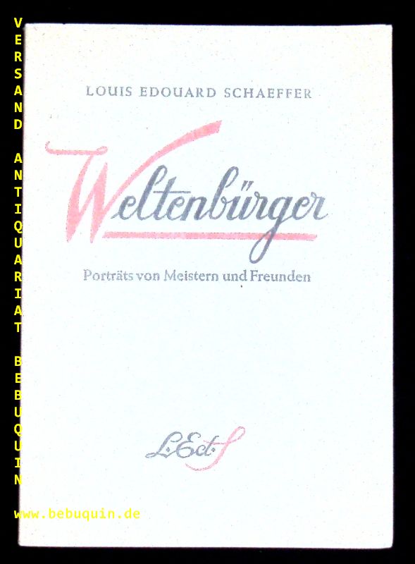 SCHAEFFER, Louis Edouard: Weltenbürger. Portraits von Meistern und Freunden. Strasbourg (Schaeffer), (1950). kl. 8. 91 S. mit 7 Tafeln. OPb.