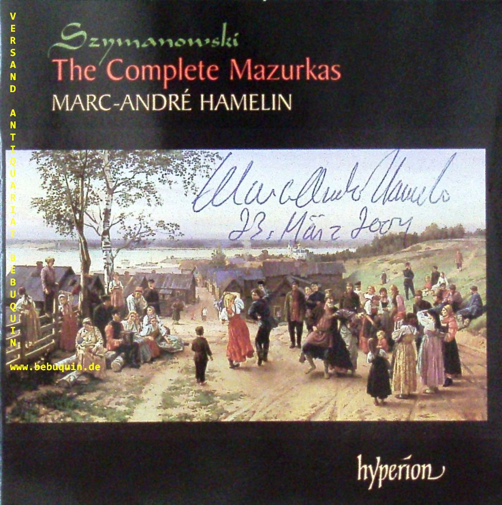 KLASSIK-CD.– HAMELIN, Marc-André (Pianist): eigenhändig auf Booklet signiert und datiert. Karol Szymanowski: The Complete Mazurkas. Hyperion (CDA 67399), 23.3.2004. Original CD. Marc-André Hamelin (* 5. September 1961 in Montreal) ist ein frankokanadischer Pianist und Komponist. (Wikipedia)