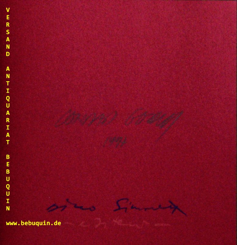 EROTIK.– GODLY, Conrad: Untitled nudes. Zurich (Dino Simonett), 1997. kl. 8°. 30 Bl. mit fotogafischen Bildtafeln unbekleideter Frauen. OSeide mit mont. Fotografie. tadellos. EA mit den eigenghändigen datierten Signaturen des Fotografen und der Verlegerin.