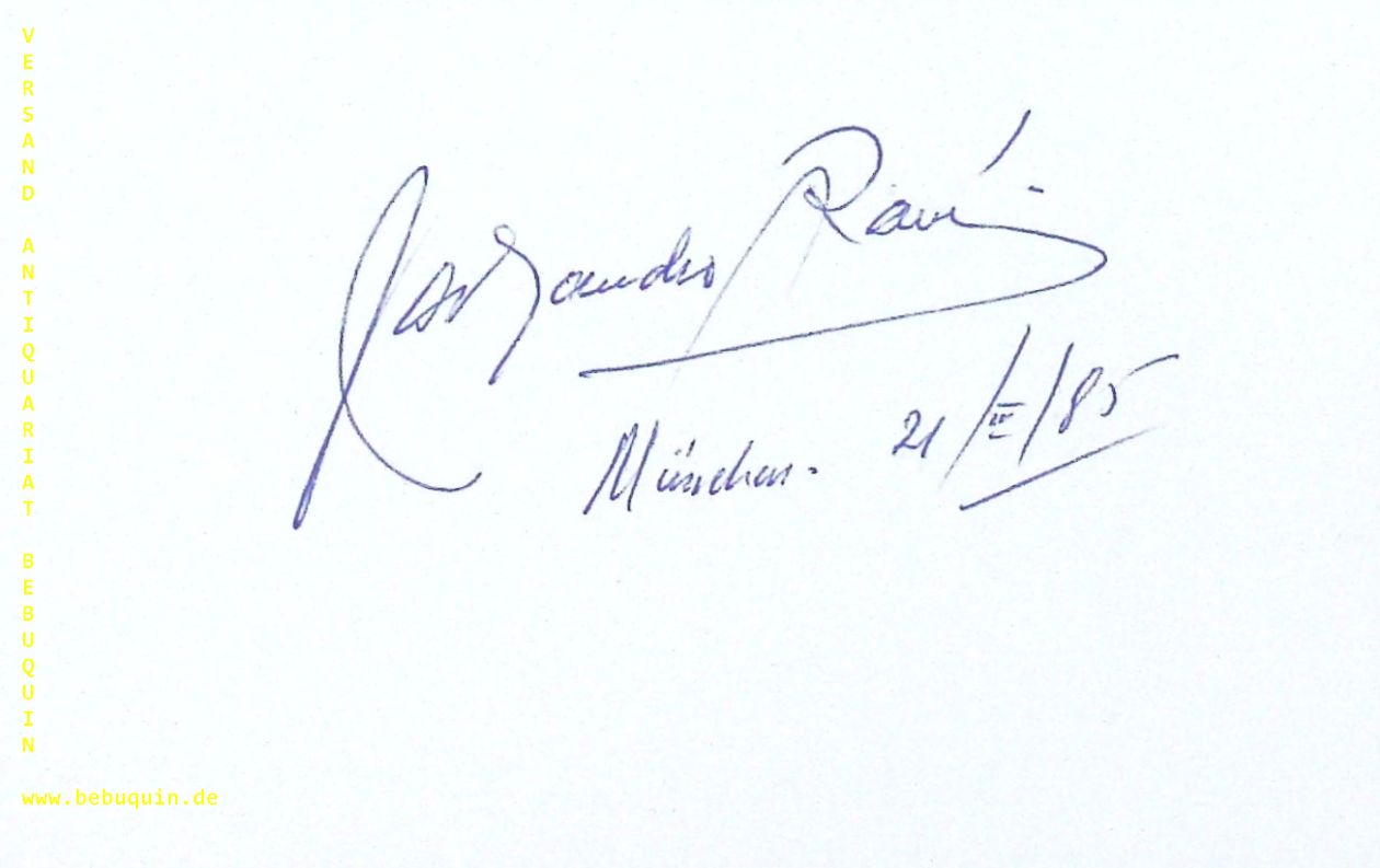 RAMIREZ, Alejandro (Tenor): eigenhändig signierte und datierte Autogrammkarte. München, 21.3.1985. . 8 x 12,5cm Karteikarte. Alejandro Ramírez (* 2. September 1946 in Bogotá) ist ein kolumbianischer Konzert- und Opernsänger (Tenor). (Wikipedia)