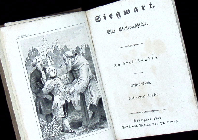 MILLER, Johann Martin: Siegwart. Eine Klostergeschichte. 3 Bände in 1 Bd. Stuttgart (Henne), 1844. 12°. 255, 239, 236 S. mit 3 Kupferfrontispizes. neuer Ln. = Lieblingsbibliothek aus der Zeit des Siegwart, Hasper a Spada, Rinaldo. Hrsg. von Otto von Friedhelm.