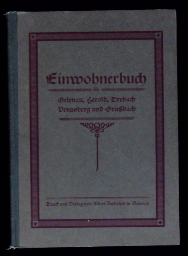 GELENAU.– ALPHABETISCHES VERZEICHNIS DER SELBSTÄNDIGEN EINWOHNER VON GELENAU 1926.– Sowie von Herold, Dreabch, Venusberg und Grießbach nebst einem Branchen-Verzeichnis. Gelenau (Rudolph), 1926. 148 S. mit zahlr. Werbetafeln. ill. OHLn. tadellos.