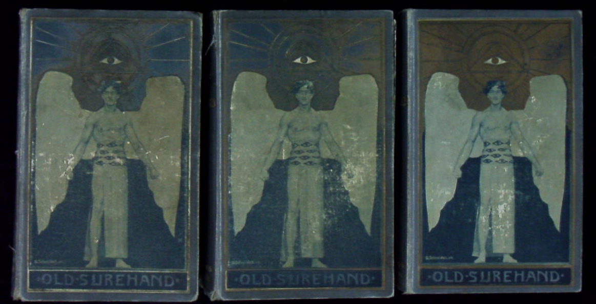 MAY, Karl: Old Surehand Reiseererlebnisse in 3 Bänden. 31.– 35. Tsd. 3 Bände. Freiburg (Fehsenfeld), (1904 / 1905). 644, 647, 566 S. mit den goldenen Vorsätzen. ill. OLn. von Sascha Schneider. (DB 67). Deckel teils etwas berieben, Kapitale teils bestoßen, Rücken von Bd. 1 mit Mittelfalz, Bd. 2 an den Kanten etwas angeplatzt, insgesamt durchaus gutes Ex. mit feiner Innenerhaltung. = Gesammelte Reiseerzählungen, Bd. XIV, XV, XIX. Plaul 261.6; 269.6; 286.5