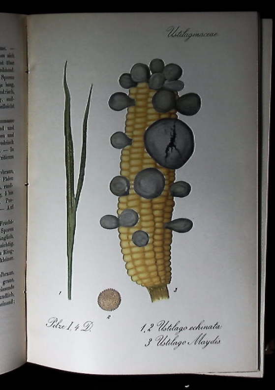 PILZE.– MIGULA, W.: Krytogamen-Flora von Deutschland, Deutsch-Österreich und der Schweiz in Anschluss an Thomé’s Flora von Deutschland. Band 3: Pilze, 1. Teil (Myxomycetes, Phycomycetes, Basidiomycetes (Ordn. Ustilagineae und Uredineae), 2. Teil (in zwei Bänden) (Basidiomycetes) und 3: Teil: Ascomycetes (in zwei Bänden) 1.Abt: (Hemiasci, Saccharomycetineae, Protodiscineae,Plectascineae, Pyrenomycetes (Perisporiales und Sphaeriales), 2. Abt.: Dothideales, Hypocreales, Hysteriales, Discomycetes, Laboulbeniaceae. 4. Teil, 1. Abt.: Fungi imperfecti: Sphaeropsidales, Melanconiales. 4. Teil in 6 Bänden. Gera, (Friedrich von Zezschwitz), 1910 – 1921. 510, 814 S. mit 146 Tafeln; 1404 S. mit 200 Tafeln, 614 S. mit zahlr. lithogr. Bildtafeln. OHLn mit jeweils 2 goldgeprägten farb. Rückenschildern. Rückenschildern gering berieben, sonst sehr gute Erhaltung, es fehlt die 2. Abt. des 4. Teils, die erst 15 Jahre später erschien. = Thomes Flora von Deutschland, Österreich und der Schweiz in Wort und Bild. EA.