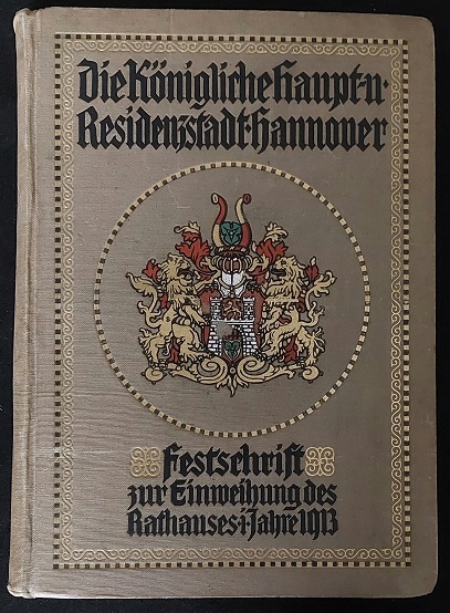 HANNOVER.– THIMME / SIEDENTOPF / ROWALD /SEUTEMANN u.a.: Die Königliche Haupt- und Residenzstadt Hannover. Festschrift zur Einweihung des Rathauses im Jahre 1913. Hannover (Jänecke), 1913. 4°. 240 S., + XIX teils far. Bioldtafeln. farb. ill. OLn. etwas gelockert. EA.