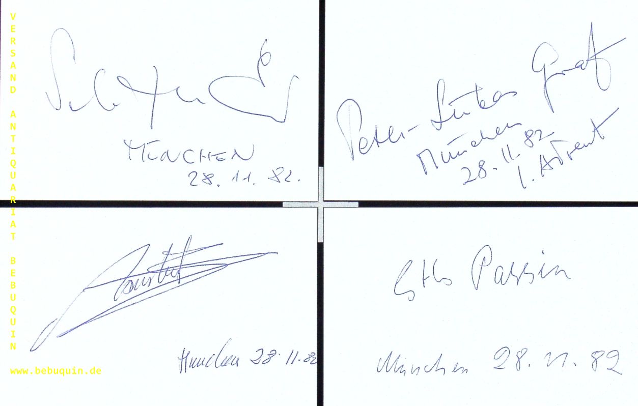 TSCHECHISCHES LEOS JANACEK KAMMERORCHESTER.– SOUSTROT, Bernard + GRAF, Peter Lukas + PASSIN, Günther u.a.: 4 eigenhändig signierte und datierte Autogrammkarte. München, 28.11.1982. 8 x 12,5 cm. 4 Karteikarte.