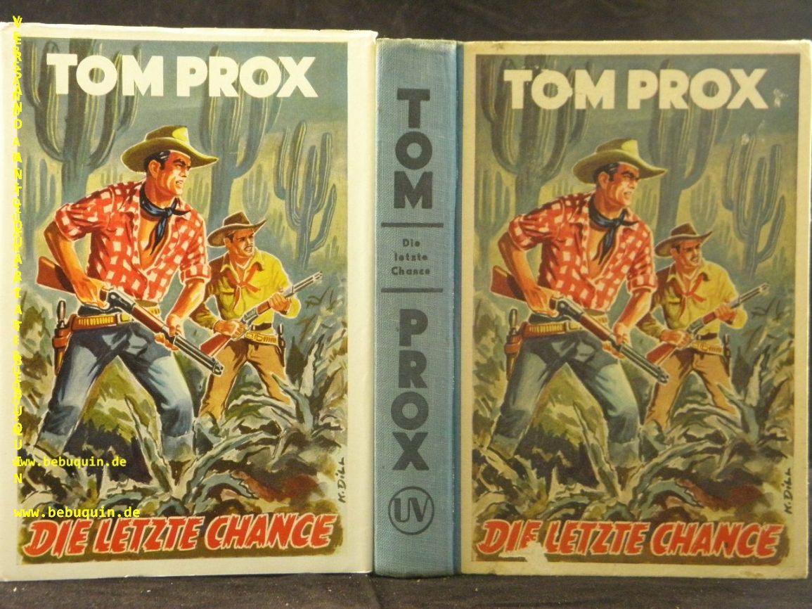 TOM PROX.– UNGER, Gert H.F.: Die letzte Chance. Sinzig (Uta), 1952. 263 S. farb. ill. OHLn mit OUmschl. gestempeltes Leihbuch. = Tom Prox abenteuerliche Erlebnisse, Bd. 23. 1. Aufl. dieser Ausgabe.