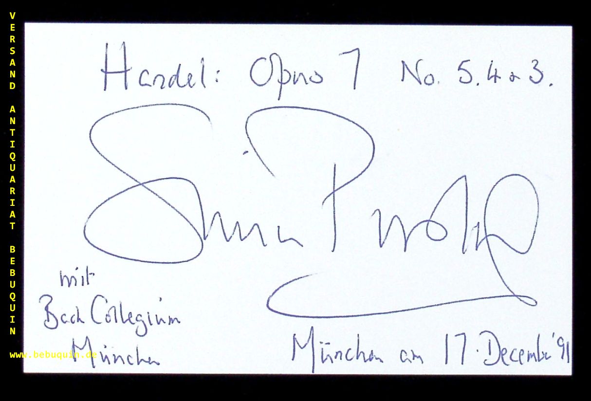 PRESTON, Simon (Orgel): eigenhändig signierte und datierte Autogrammkarte. Mit dem Bach Collegium München. München (Herkulessaal), 17.12.1991. 8 x 12.5 cm. Karteikarte. Simon Preston (* 4. August 1938 in Bournemouth, England) ist ein englischer Organist, Dirigent und Komponist.(Wikipedia)