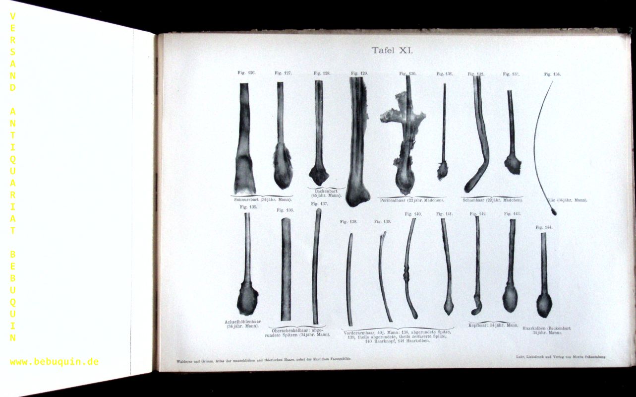 WALDEYER, Atlas der menschlichen und tierischen Haare sowie der ähnlichen Faserg…