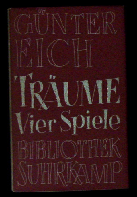 EICH, Günter: Träume. 4 Spiele. Berlin/Frankfurt (Suhrkamp), 1953. 186 S. OPb mit OUmschl. tadellos. = Bibliothek Suhrkamp, Bd. 16. EA WG² 8.