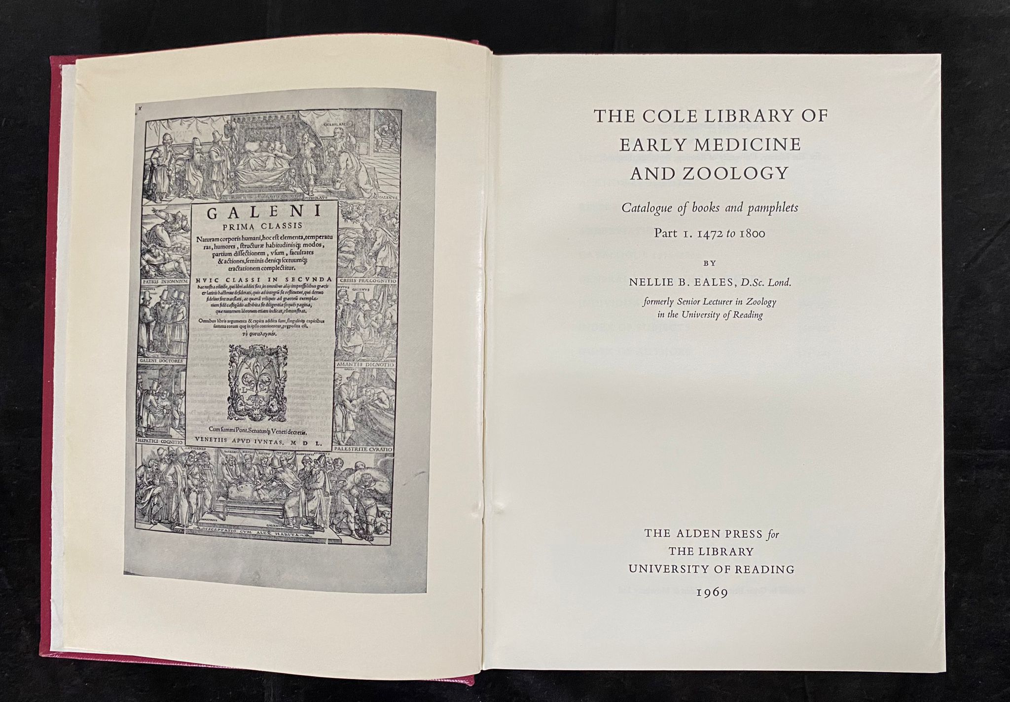 MEDIZIN.– EALES, Nellie Barbara: The Cole Library of Early Medicine and Zoology. Catalogue of books and pamphlets. Part I: 1472 to 1800. Oxford (Alden Press), 1969. XIV, 425 S. mit Titelbild. OLn mit goldgeprägtem Rücken. EA.