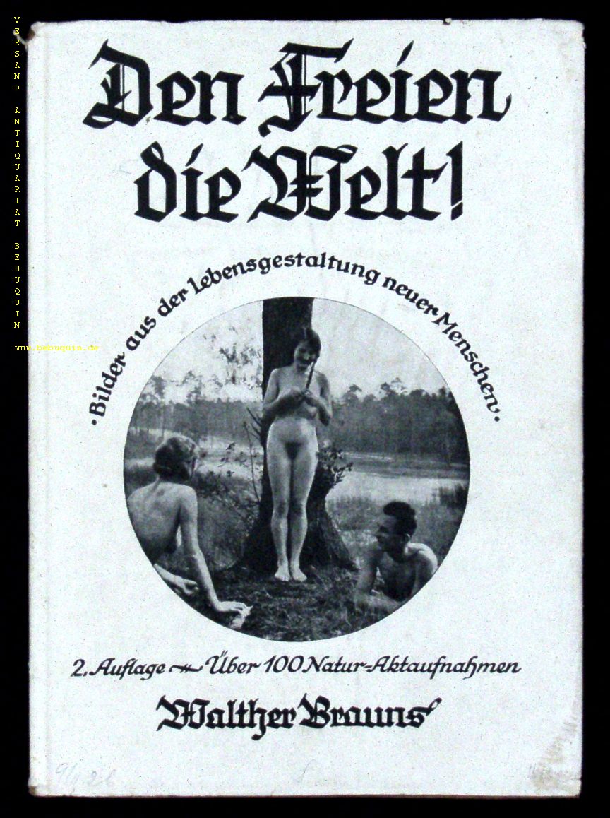 EROTIK.– BRAUNS, Walther: Den Freien der Welt! Bilder aus der Lebensgestaltung neuer Menschen. II. Aufl. Egestorf (Laurer), 1926. 80 S. mit 101 Natur-Aktaufnahmen bekanter Lichtbildkünstler. OKart mit OUmschl. Vorderdeckel mit Knickspur, sonst gutes Ex.