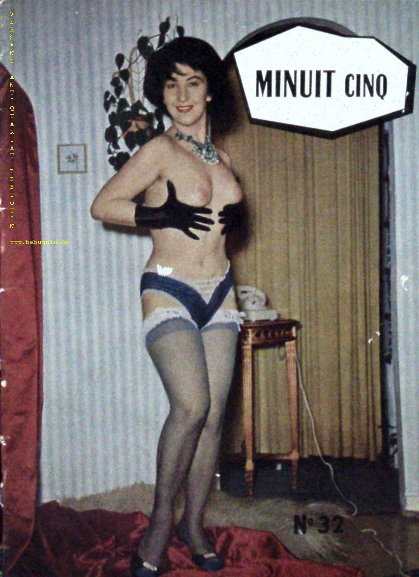 EROTIK.– MINUIT CINQ.– No. 32. Paris (Cres & Fils), ca 1950. 16 Bl. mit zahlr. fotografischen Bildern. farb. ill. OBr. gutes Ex. EA.