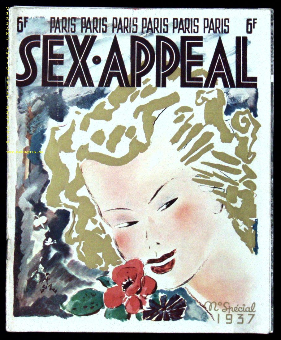 EROTIK.– PARIS SEX APPEAL.– No 47. Revue mensuelle le plus Parisien. Paris (Henri Francois), 1937. 4°. ca 50 S. mit zahlr. teils fotografischen Bildern von zumeist unbekleideten Menschen. farb. ill. OKart. Heftung teils gelockert, sonst gut. EA.