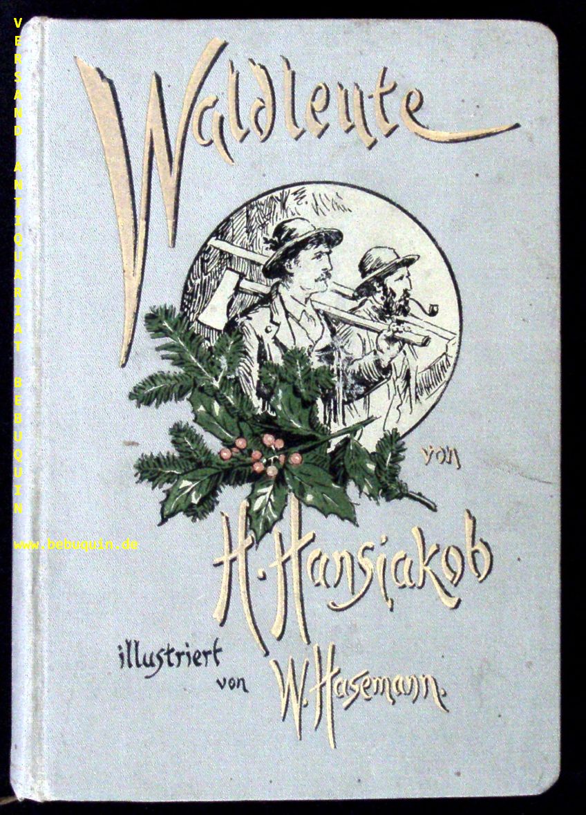 HANSJAKOB, Heinrich: Waldleute. Erzählungen. 2. Aufl. Stuttgart (Bonz & Comp.), (1898). kl. 8°. 448 S. mit Illustrationen von W. Hasemann. ill. OLn. Titelseite etwas stockig. Frühe Ausgabe mit einer 4zeiligen eigenhändigen persönlichen voll signierten Widmung des Verfassers auf Vorsatz.