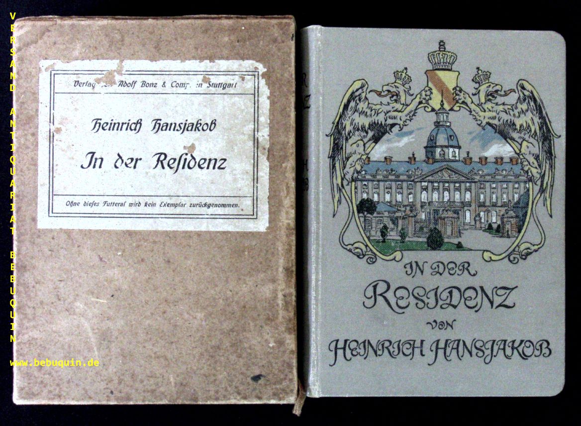 HANSJAKOB, Heinrich: In der Residenz. Erinnerungen eines badischen Landtagsabgeordneten. 3. Aufl. Stuttgart (Bonz & Comp.), 1911. kl. 8°. 568 (2) S. mit einem Portrait des Verfassers. ill. OLn. in OSchuber. vorderes Gelenk etwas gelockert.