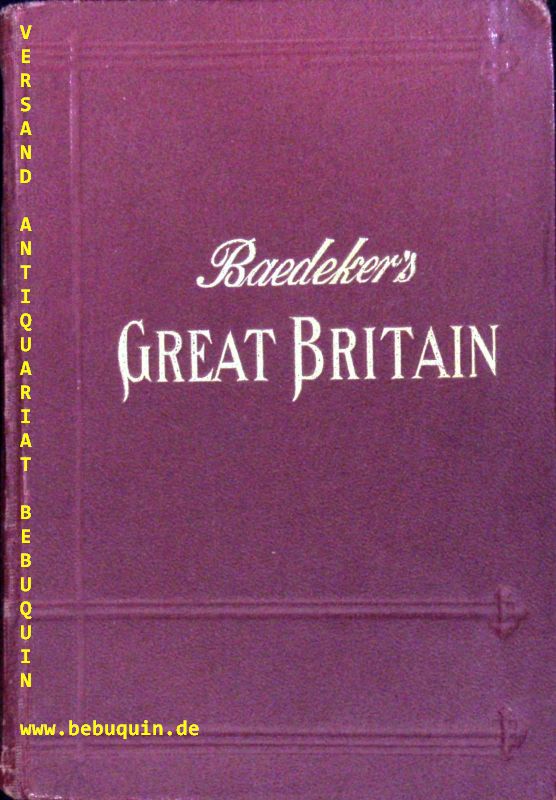 BAEDEKER.– GREAT BRITAIN.– Handbook for travellers. 8th rev. ed. Leipzig (Baedeker), 1927. IXX, 696 S. mit 94 Karten und Plänen und 1 Panorama. OLn. gutes Ex. BK E222.
