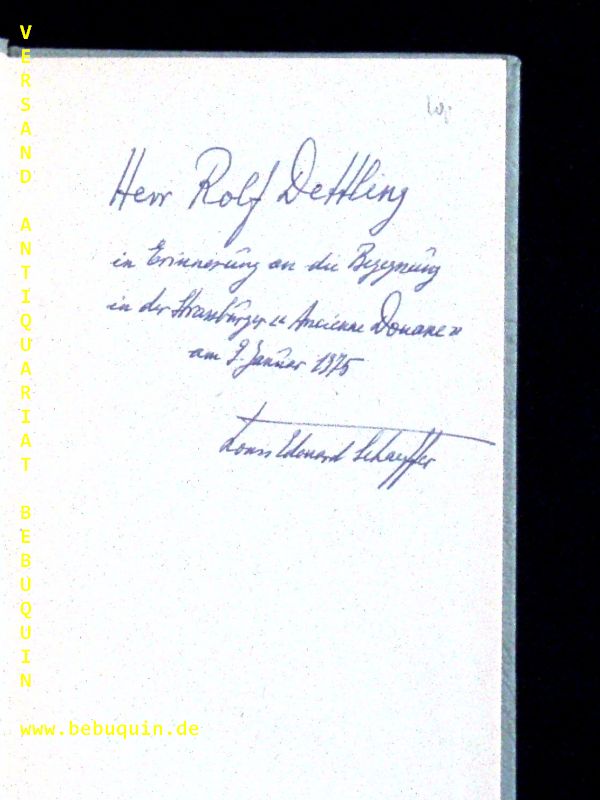 SCHAEFFER, Louis Edouard: Capriccio. Eine Schweizerreise zwischen Frühjahr u. Sommer. Strasbourg (Grandfontaine), (1945). kl. 8. 56 S. OPb. EA mit einer 5zeiligen signierten und datierten persönlichen Widmung des Verfassers auf Vorsatz.