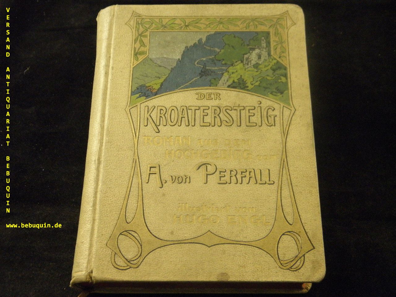 PERFALL, Anton Freiherr von: Der Kroatersteig. Roman aus dem Hochgebirg. 2. Aufl. Stuttgart (Bonz & Comp.), 1905. kl. 8°. 433 (2) S. mit Illustrationen von Hugo Engl. ill. OLn. Einband leicht angeschutzt, sonst gutes Ex.