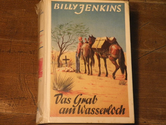 WESTERN.– OLD, Broderick: Das Grab am Wasserloch. Sinzig (Uta), 1954. 255 S. OPb. Schutzfolie des Einbandes beschädigt, Buchhandlungsexemplar mit zahlr. Stempeln, Vorsatz bemalt. = Billy Jenkins Wild-West-Erzählungen Band 94. Sehr selten.